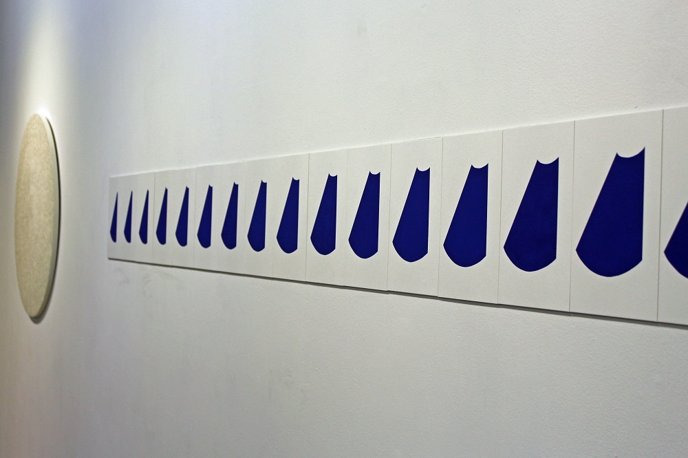 Bada Song: Ta-il 16 (Cheong-wa) (2012). Printing Ink on paper, 30 x 320 (each: 20 x 30 cm). Far left: Soon Yul Kang: Spiritual Journey (2012)