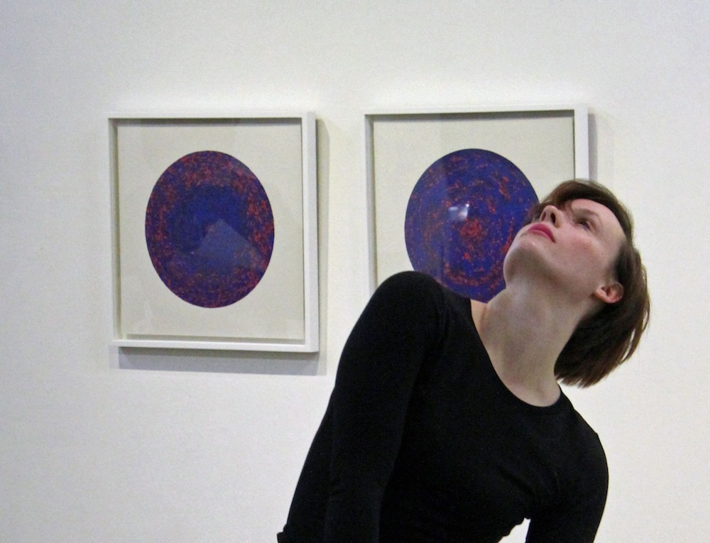 A dancer performs in front of Soon Yul Kang’s Unity (2012) and Harmony (2012)