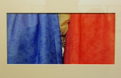 Joohee Chun’s work dominated the side wall as you approach the KCC’s multi-purpose space. As her first major work since becoming a mother, this work had special significance for Chun. 복 福 Bok – Blessing (2012) involved experimenting with new techniques – it was the first time she had used aluminium, or applied her acrylic layers to unmounted paper. The rich palette of colours respected the title of the exhibition without being bounded by it, and the mauves and purples were particularly effective.