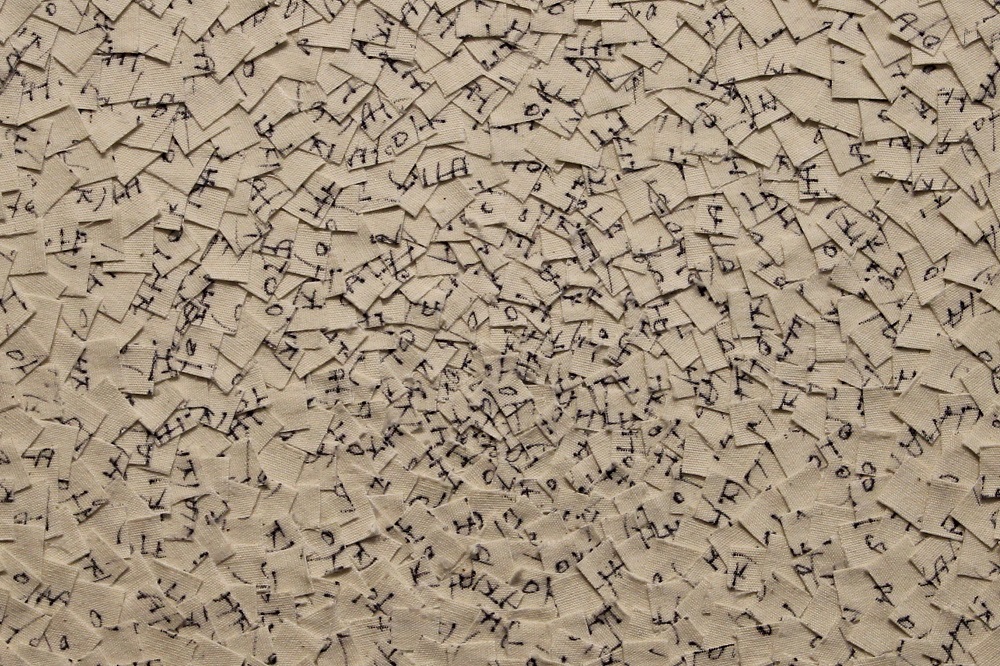 Soon Yul Kang: Spiritual Journey (2012). Cotton collage, ink, 96 x 96 cm (detail)