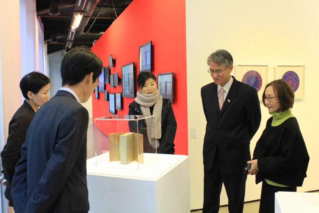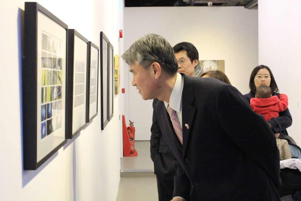 We were honoured to have HE Ambassador Park Suk-hwan visit the exhibition and meet the artists. He was joined by the director of the KCCUK, Kim Kab-soo.